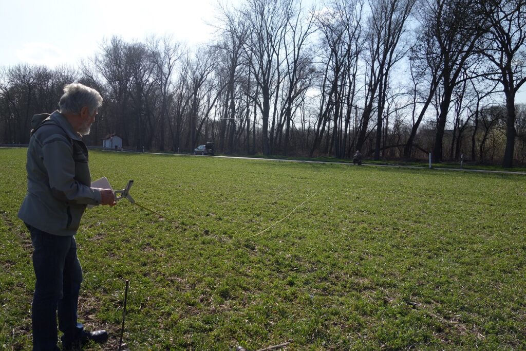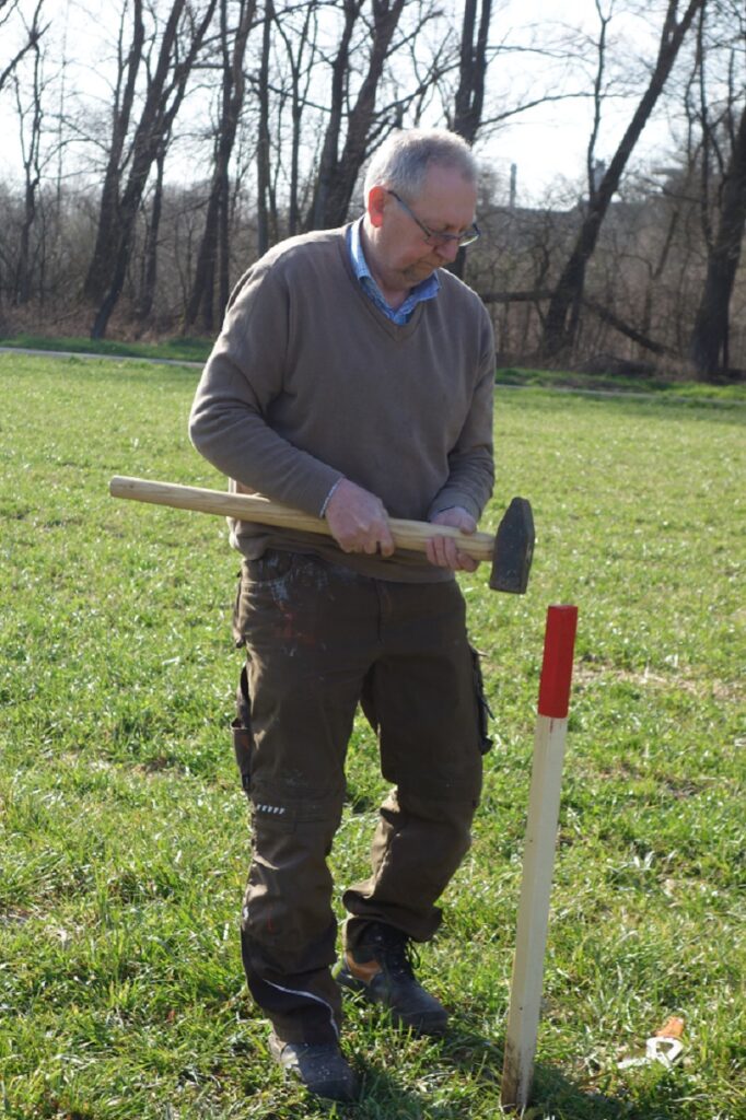 Am 26. März – bei schönstem Wetter – machten sich zwei Mitglieder des Vorstandes auf, das Weltacker-Grundstück auszumessen und mit Pflöcken zu markieren.