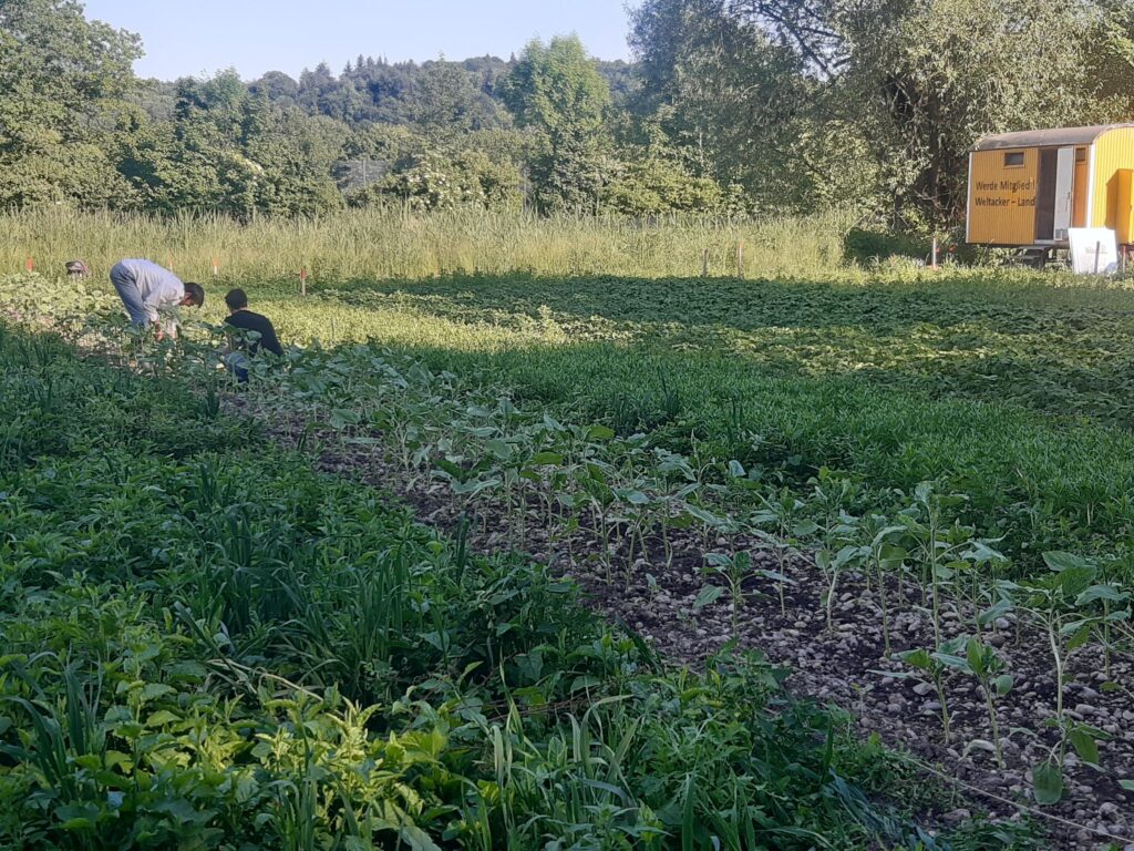 Da haben doch glatt drei fleißige Weltacker-Freund.innen den klassischen Ausflugstag Vatertag genutzt und sich a, Weltacker eingefunden, unsere Jungpflanzen wieder Luftverschafft und gejätet. Ganz freiwillig!