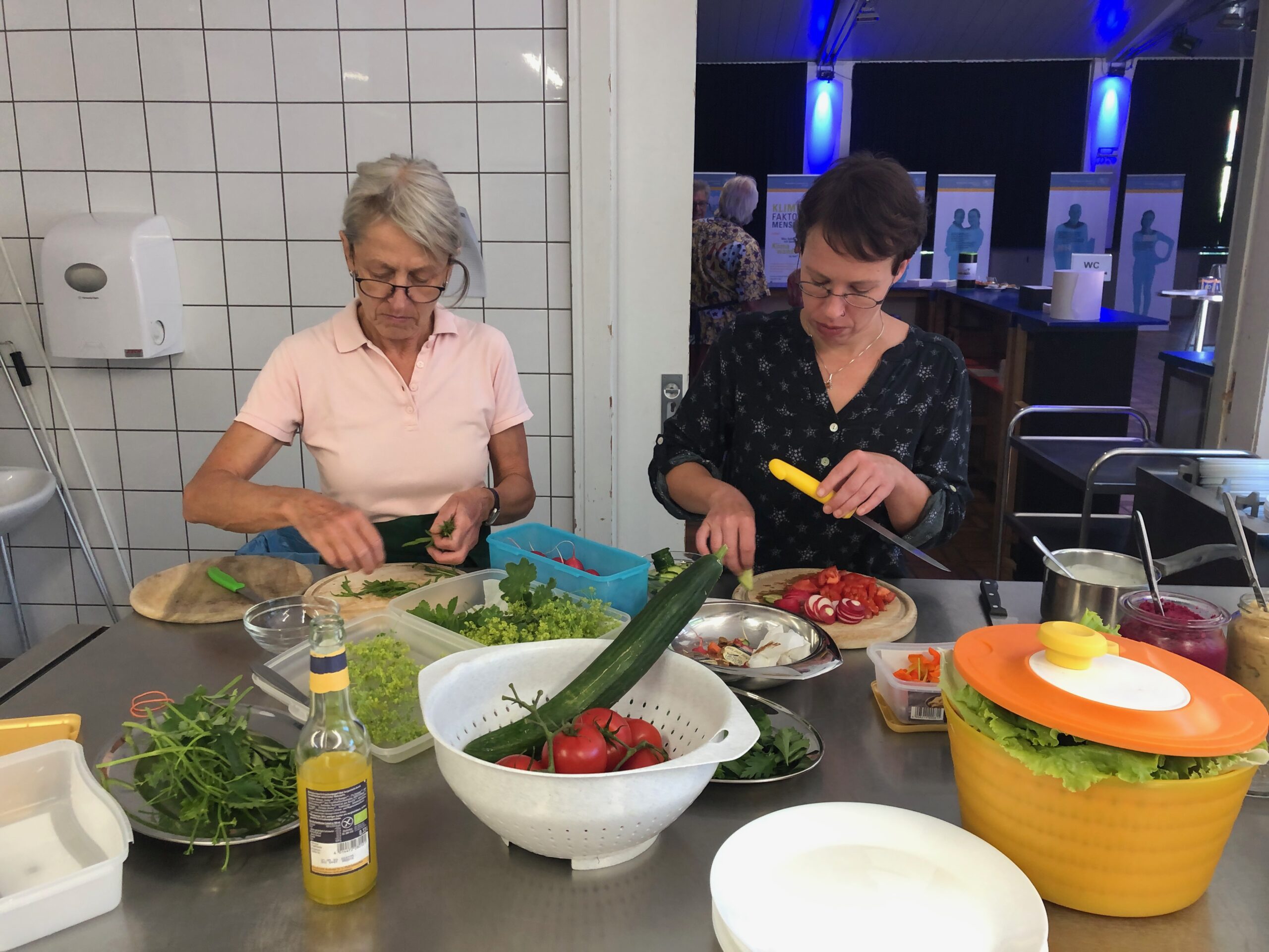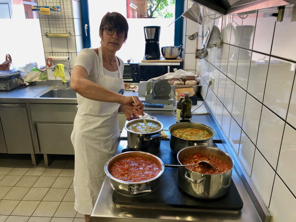 Klar, waren auch wir mit dem Weltacker Landshut dabei. Wir hatte sogar eine ganz besondere Rolle auf dem Klimatag. Wir haben uns bereit erklärt, das Catering bei der Veranstaltung in der Alten Kaserne zu übernehmen: Davor haben sich die versierten Köch.innen des Weltackers getroffen und in der heimischen Küche Kuchen und Gebäck gebacken, Chilli und Curry gekocht, vegetarische Brotaufstrichen gemixt. Natürlich alles Bio. Einiges Gemüse stammte vom eigenen Acker, der überwiegende Teil waren großzügige Spenden unserer Unterstützer.innen.