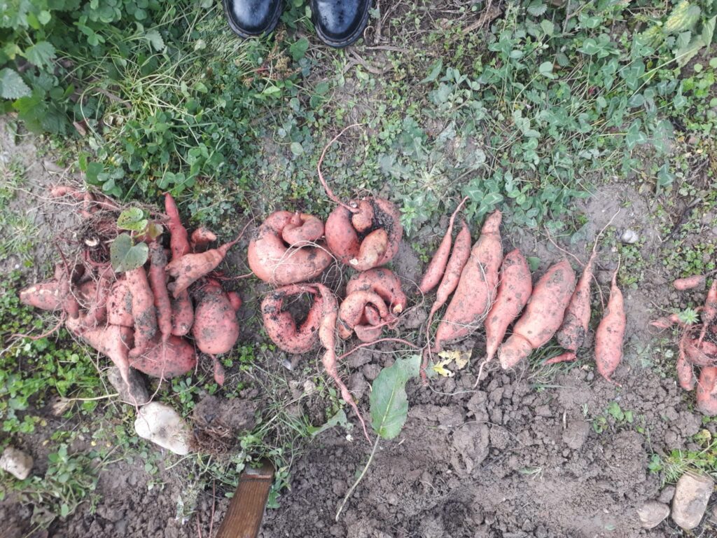 Wer hätte das gedacht, dass in Niederbayern Erdnüsse und Süßkartoffeln so formidabel wachsen! Aber es ist so und am Weltacker konnten wir unse über eine schöne Ernuss- und Süßkartoffelernte freuen. Zwar hätten unsere Erdnüsse schon noch ein paar Wochen Sonne vertragen können – da merkt man halt doch, dass die Erdnuss keine Niederbayrisches Urgestein ist .-) . Und die Nüsse hätten nach der Ernte noch ein paar Tage auf dem Acker nachreifen solllen. Aber wir wegen unseres nasskalten Herbstwetters lieber auf Nummer sicher gegangen und haben sie aus der Erde geholt, ehe sie vom Frost geschädigt werden, faulen und schimmeln. So durten sie in einen Wintergarten umziehen. Vielleicht bleiben ja neben dem Saatgut für 2023 ein paar zum Rösten übrig für Freunde des Weltackers?
