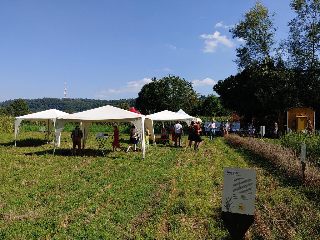 Das Wetter zeigte sich von seiner besten Seite: Nicht zu warm, aber sonnig und grade richtig, um draußen am Acker zu feiern. Entsprechend konnten wir usn auch den ganzen Tag über regen Zulauf von Festbesucher.innen freuen und es herrschte ein stetes Kommen und Gehen. Unser Orga-Team hat auch perfekt dafür gesorgt, dass sich alle wohl gefühlt haben: Live-Musik im Hintergrund sorgte für groovige Stimmung und herzhafte Genüsse frisch vor Ort gezaubert von unseren Köch.innen aus der aktuellen Ernte füllten alle Bäuche. Super lecker war die einhellige Meinung. Der Hit war übrigens unsere Edamame: schnell, unkompliziert und schmackhaft!